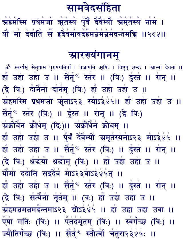 Observe how verse 594 of Sama Veda Samhita (at the top of the page) is transformed into